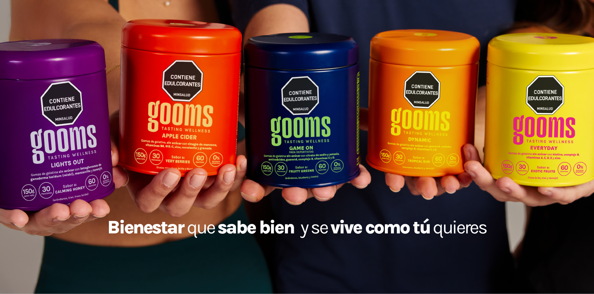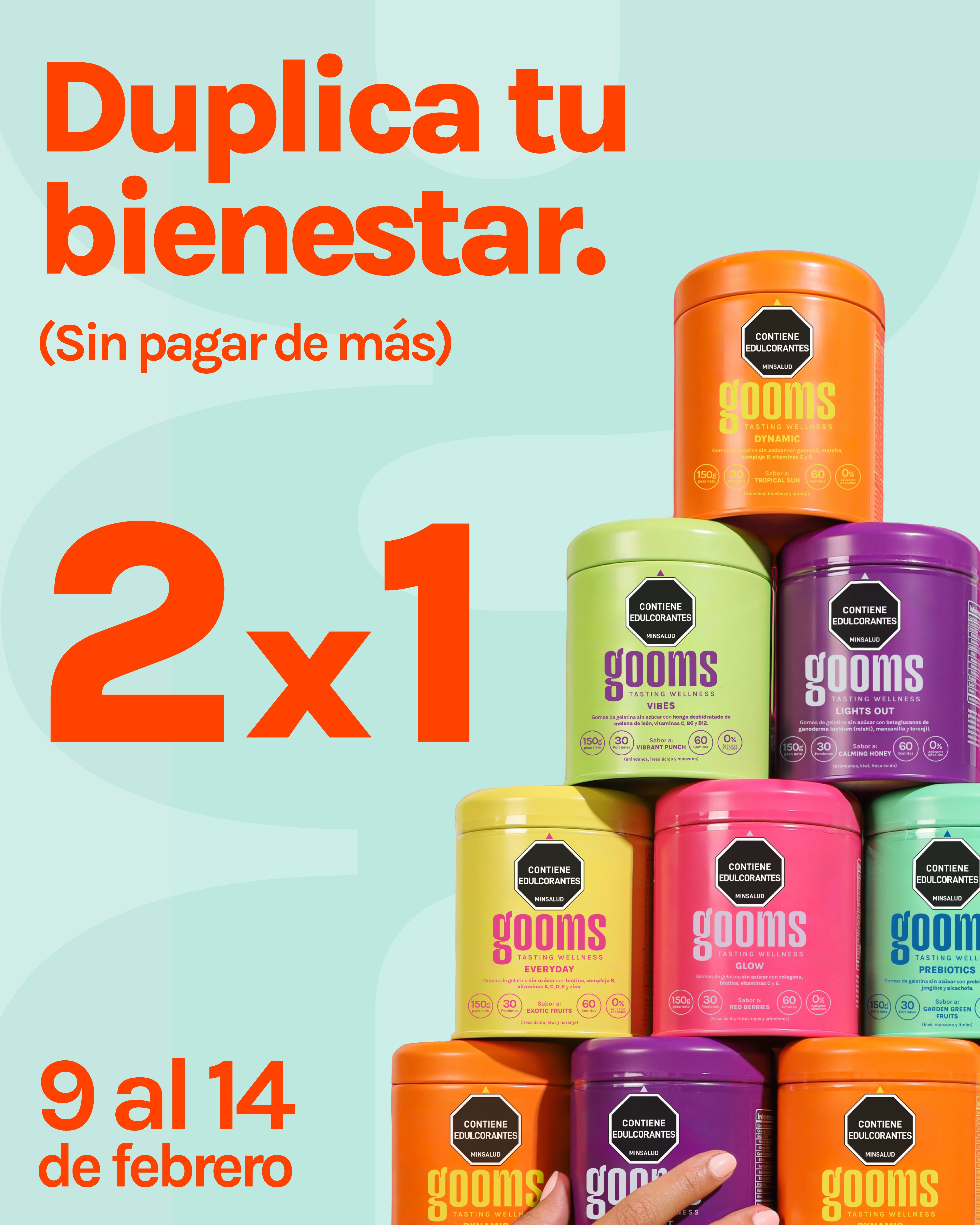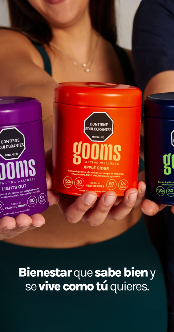 Gomitas para acompañarte en tus rituales diarios, haciendo que cuidarte sea simple y rico. Para pequeños momentos que se integran fácil a tu rutina: antes de entrenar, al cerrar la noche, en tu ritual de cuidado personal o cuando quieras darte un respiro.Con fórmulas limpias, sin azúcares añadidos: Gooms, el mini-ritual que hace tu día más fácil y ligero.
