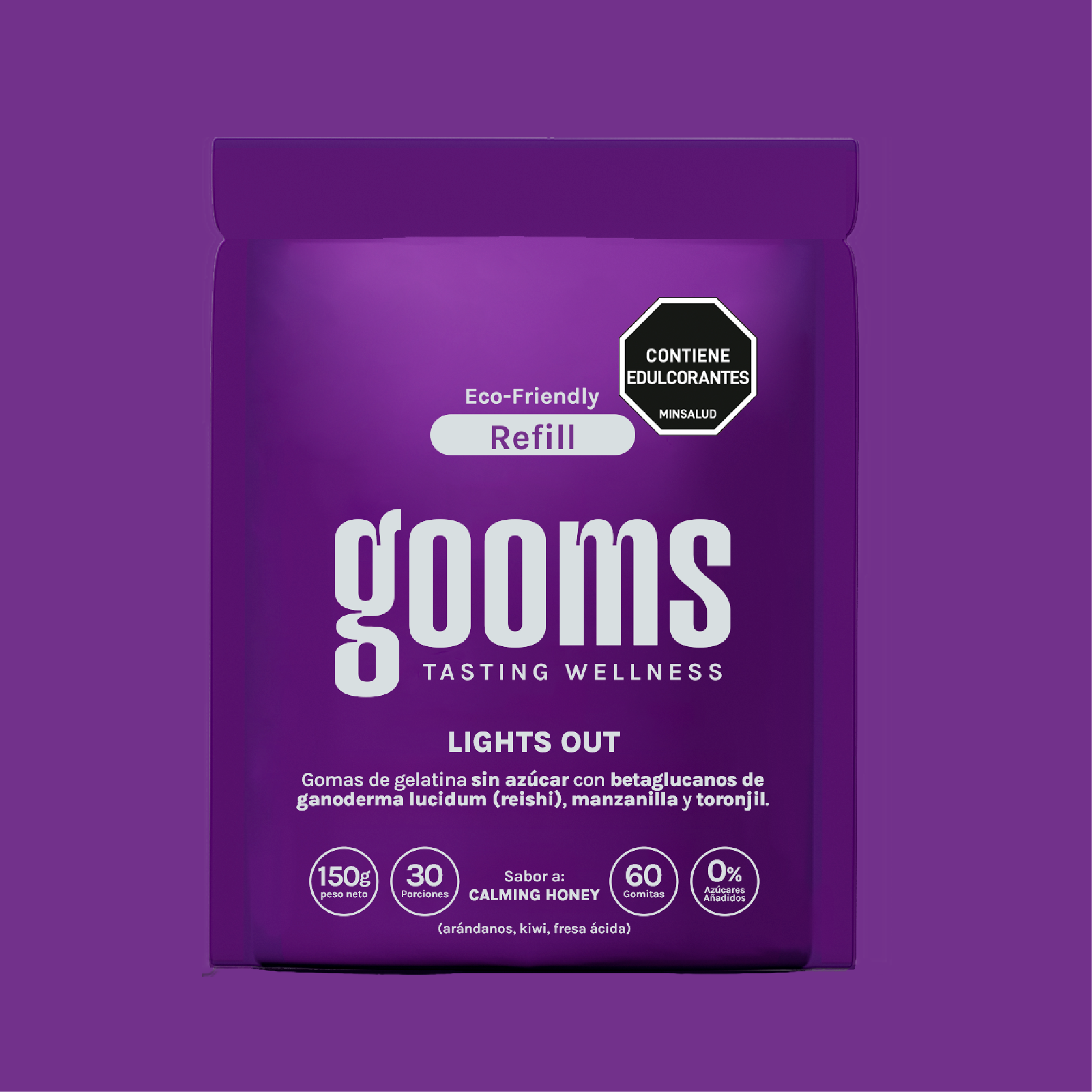 - sabor Calming Honey (arándanos, kiwi y fresa ácida).